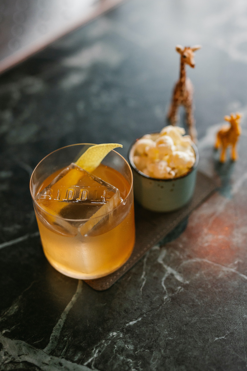 Neki od nas pred kraj radnog vremena razmišljaju o tome koji film ili koju predstavu da pogledaju, te koje bi kokice mogli da poruče. Dok je predstava iza bara, mi smo na sceni, a vama predstavljamo remek-delo iz naše laboratorije u režiji Riddleovog tima. Viski redestilovan kokicama. Da, viski sa ukusom kokica, upotpunjen sirupom od rtanjskog čaja, kombinacijom Angostura i Orange bittera.