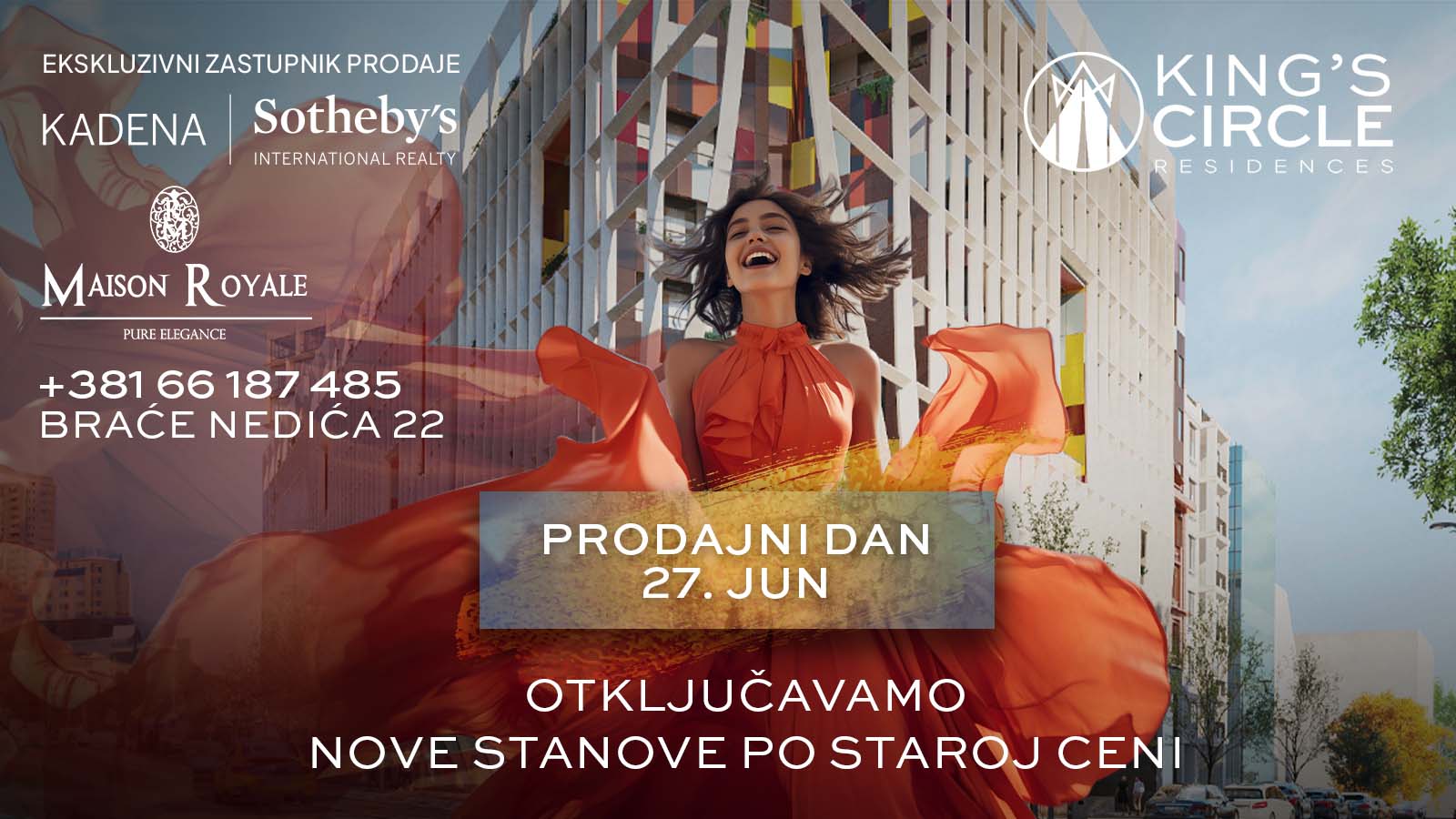 Novi simbol grada – luksuzni kompleks King’s Circle Residences na Slaviji, otvara svoja vrata za sve zainteresovane kupce 27. juna na prodajnom danu. Ovo je jedinstvena prilika da iz prve ruke doživite projekat renomiranog investitora Maison Royale, koji je reputaciju izgradio mnogobrojnim prestižnim kompleksima izgrađenim u Beogradu.