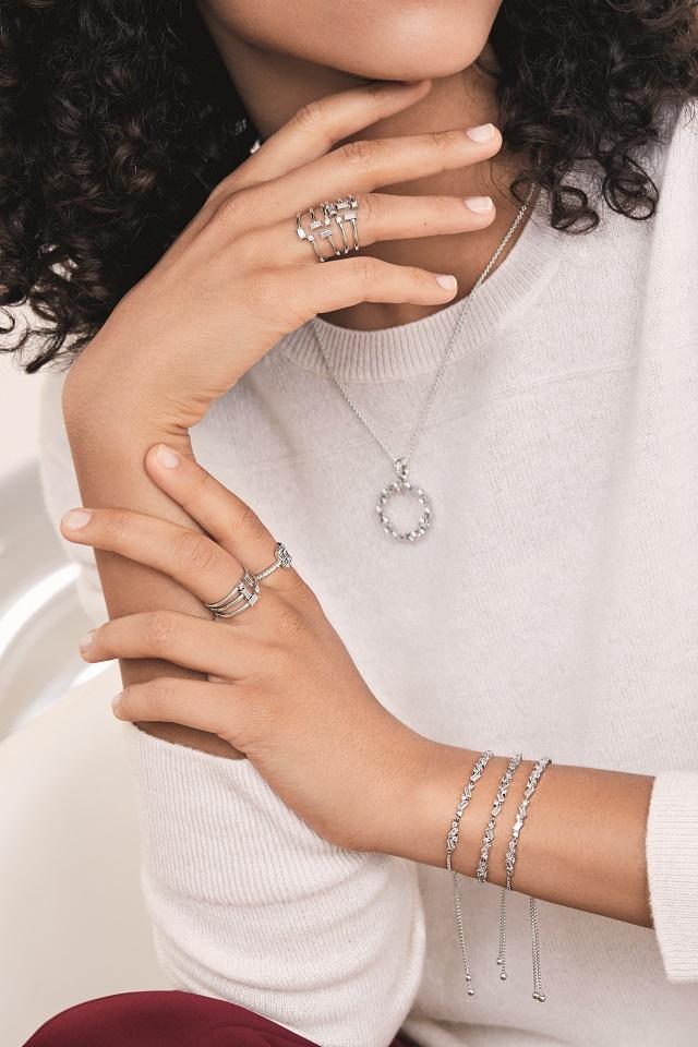 Neka prstenje bude u fokusu vaše odevne kombinacije; kreirajte upadljiv niz otvorenim „svetlucavim“ prstenom i prstenom „Blistavi led“ od srebra, nosite ih na različitim prstima.