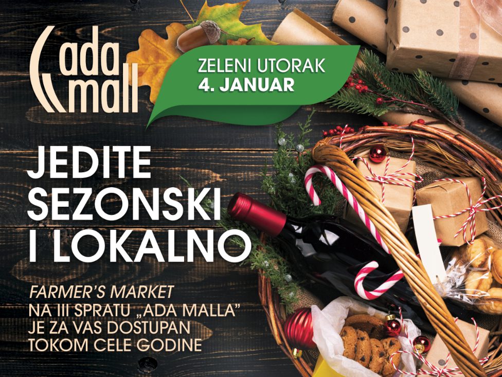 Prvi utorak u 2022. godini, tačnije 4. januar, poznatiji kao ZELENI UTORAK u ADA MALL-u posvećen je lokalnim proizvođačima zdrave hrane koji su u okviru Farmer’s marketa dostupni cele godine na trećem spratu ovog šoping centra.