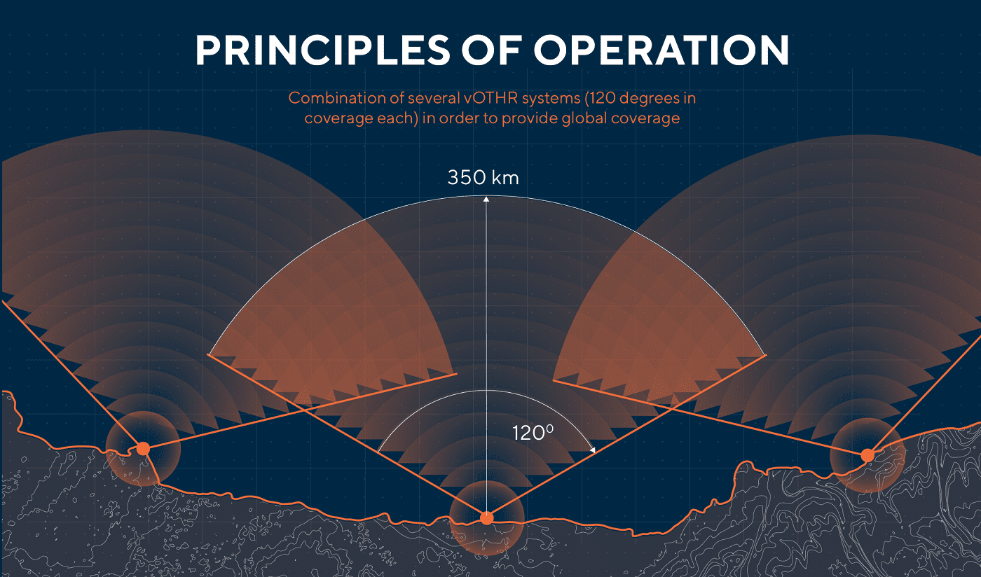 Kratki talasi imaju komponentu koja se prostire pravolinijski, ali ima i komponentu koja se prostire površinski i prati zakrivljenost zemljine kugle. Tu komponentu, zajedno sa drugim moćnim informacionim tehologijama i posebno razvijenim algoritmima koristimo za detekciju brodova na vodi iza linije horizonta, na daljinama čak od 360 km! Zemlje koje koriste ovaj sistem zaštite, prijavljuju znatno povećanje sigurnosti eksluzivne ekonomske zone, to jest vodene teritorije koje njima pripadaju, kao i drastično smanjene nivoa kriminalnih aktivnosti i postignutu potpunu sigurnost kao i značajne ekonomske efekte za državu.