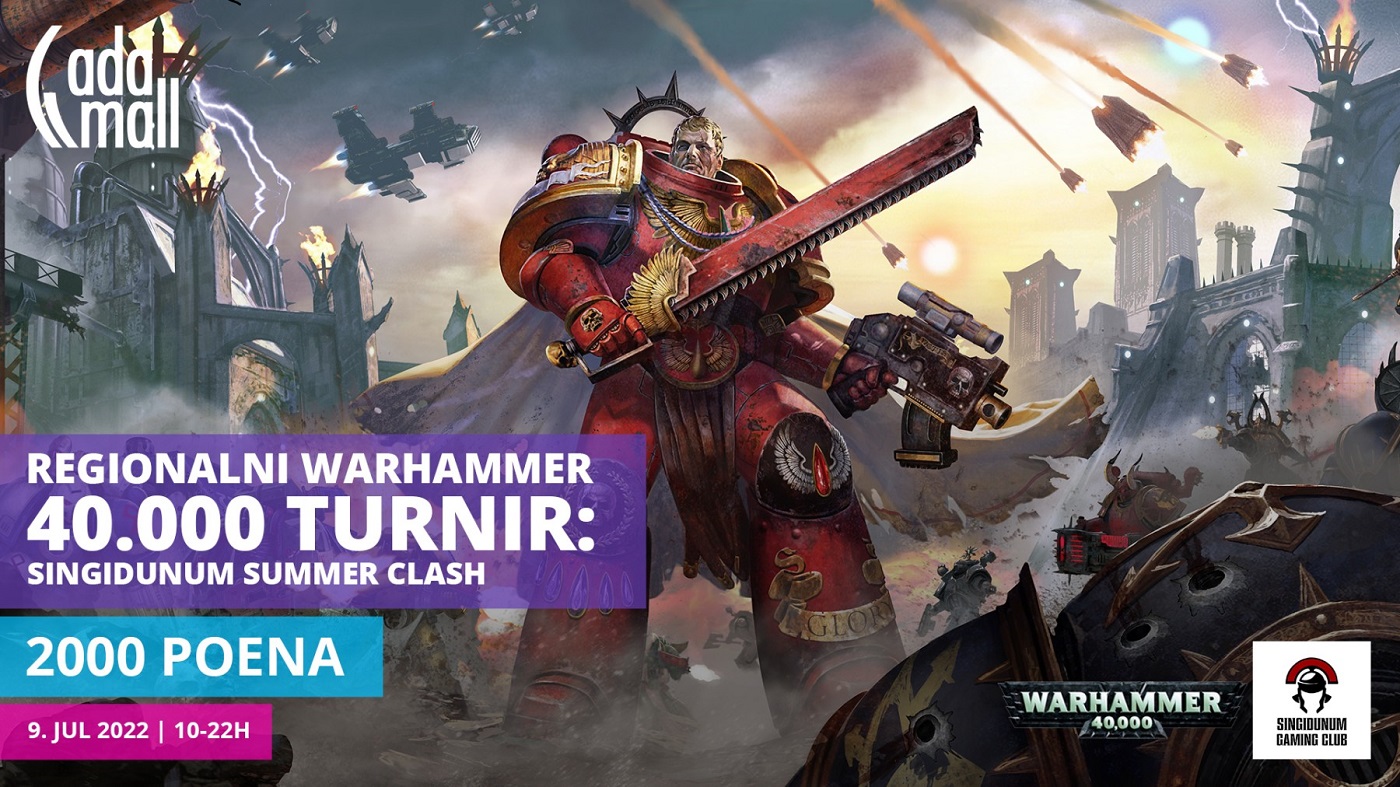 Regionalni Warhammer 40.000 turnir u Srbiji – najpopularnija stono-strateška ratna igra sa minijaturama na svetu, posebno popularna u Velikoj Britaniji i Sjedinjenim Američkim Državama, u subotu 9. jula od 10h do 22h održava se na trećem spratu Ada Mall Shopping Centra.