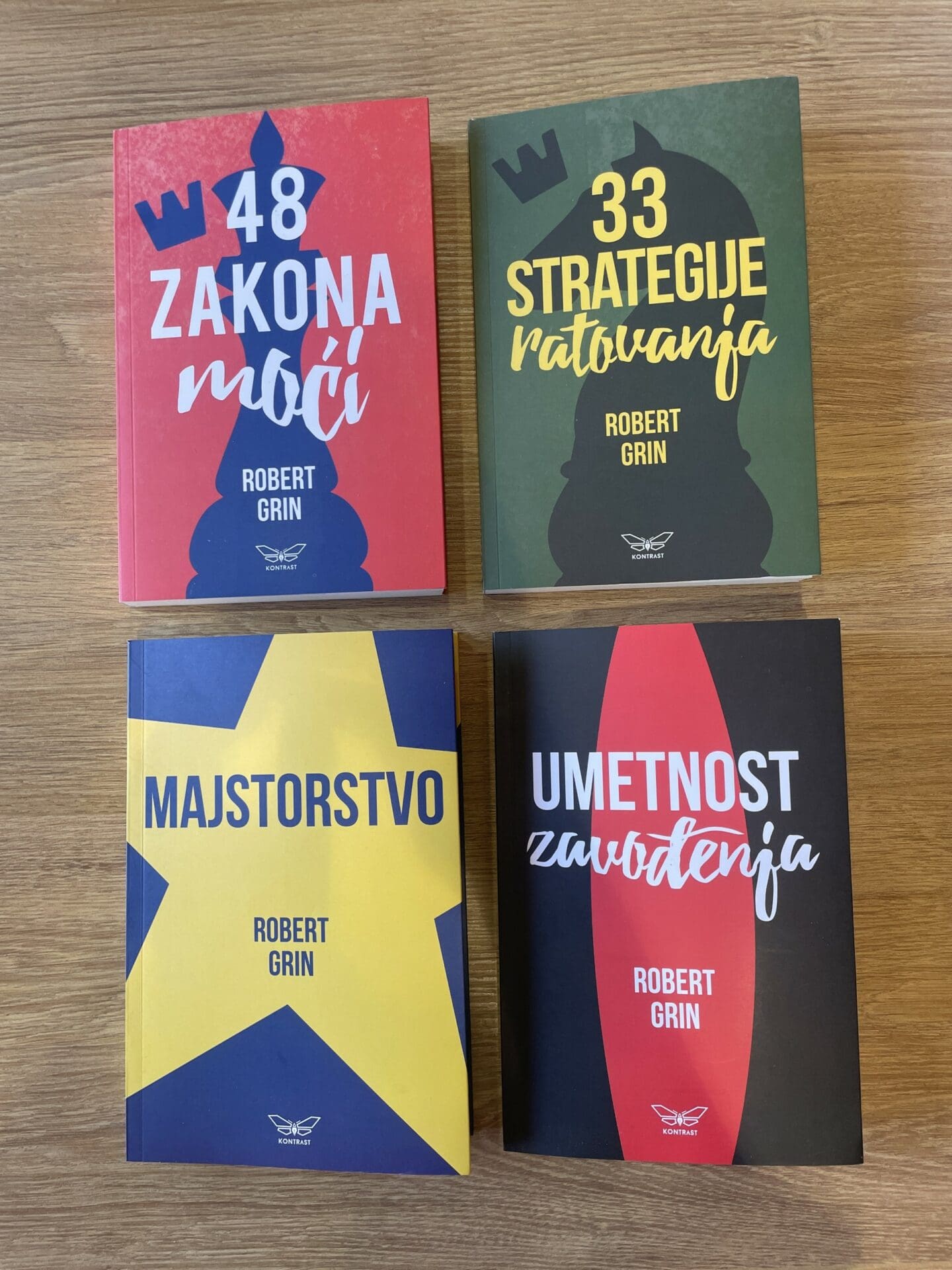 Komplet knjiga Roberta Grina obuhvata četiri njegova najpoznatija dela: „48 zakona moći”, „33 strategije ratovanja”, „Umetnost zavođenja” i „Majstorstvo”. Sva četiri naslova su svetski bestseleri u kojima slavni autor sažima zaključke vekovima duge istorije proučavanja ljudskih odnosa i moći kao presudnog parametra društvenog poretka.