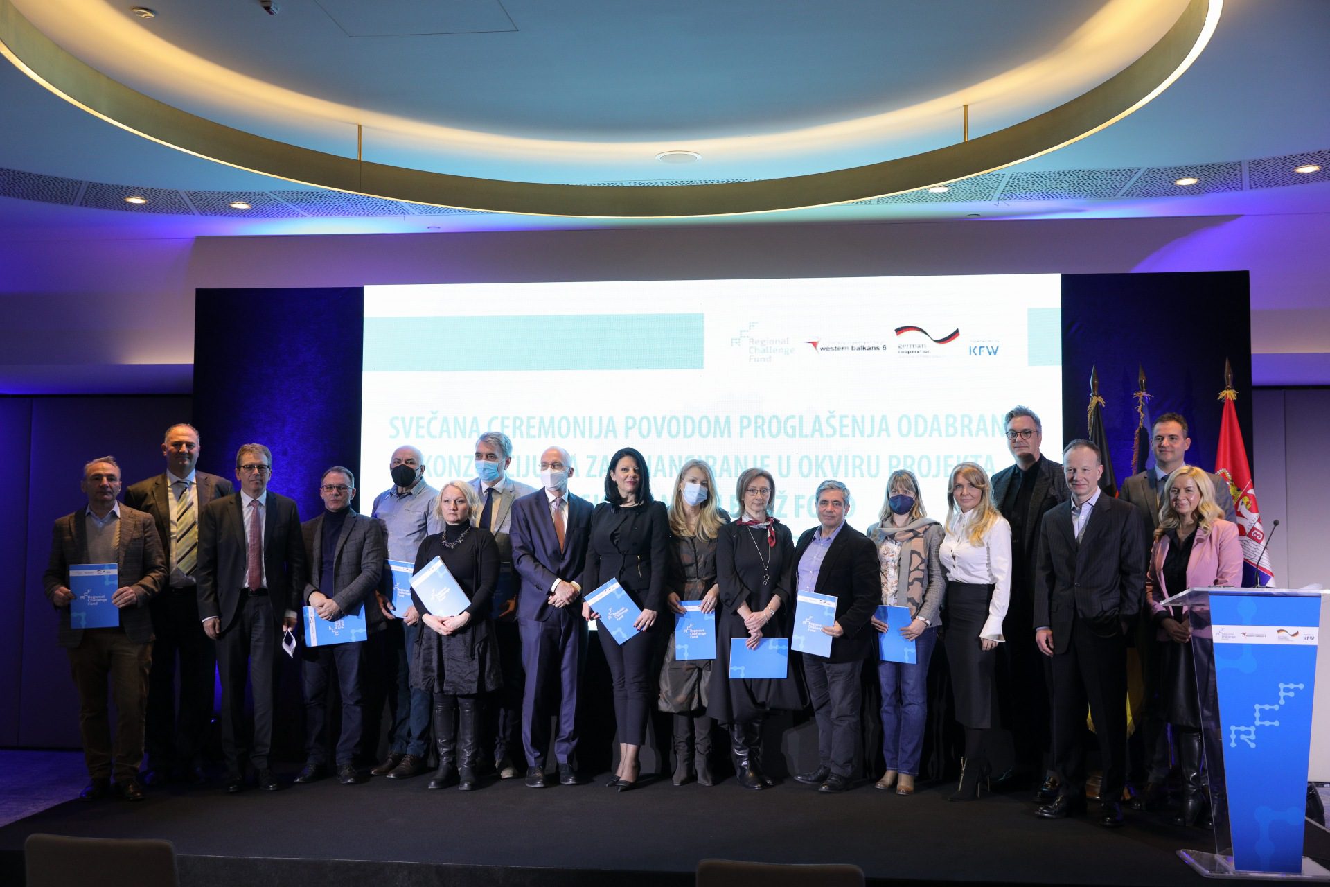 Na Svečanoj ceremoniji koja je upriličena povodom proglašenja odabranih konzorcijuma u okviru prve faze projekta Regionalni čelendž (challenge) fond, predstavljeni su projekti koji će dobiti sredstva, i dodatno je istaknut značaj finansiranja ovakvih projekata za dalji razvoj naše privrede i ekonomiju Zapadnog Balkana.