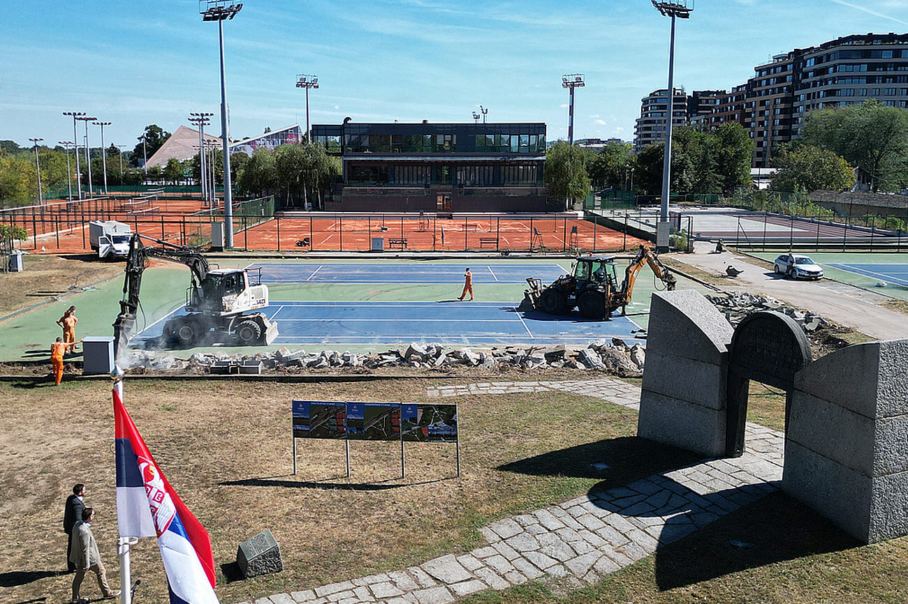 Mašine su počele da ruše tri teniska terena u okviru Sportskog centra „Milan Gale Muškatirović“, kako bi se na tom mestu uradio Spomen-park oslobodiocima Beograda iz 1915.