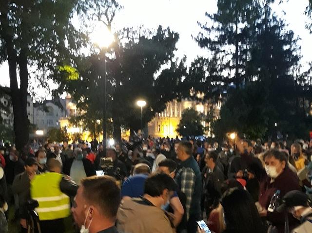U 20 časova prisutni su aplaudirali zdravstvenim radnciima, a nakon toga u 20.05 je počela buka – okupljeni su udarali u šerpe i duvali u pištaljke.