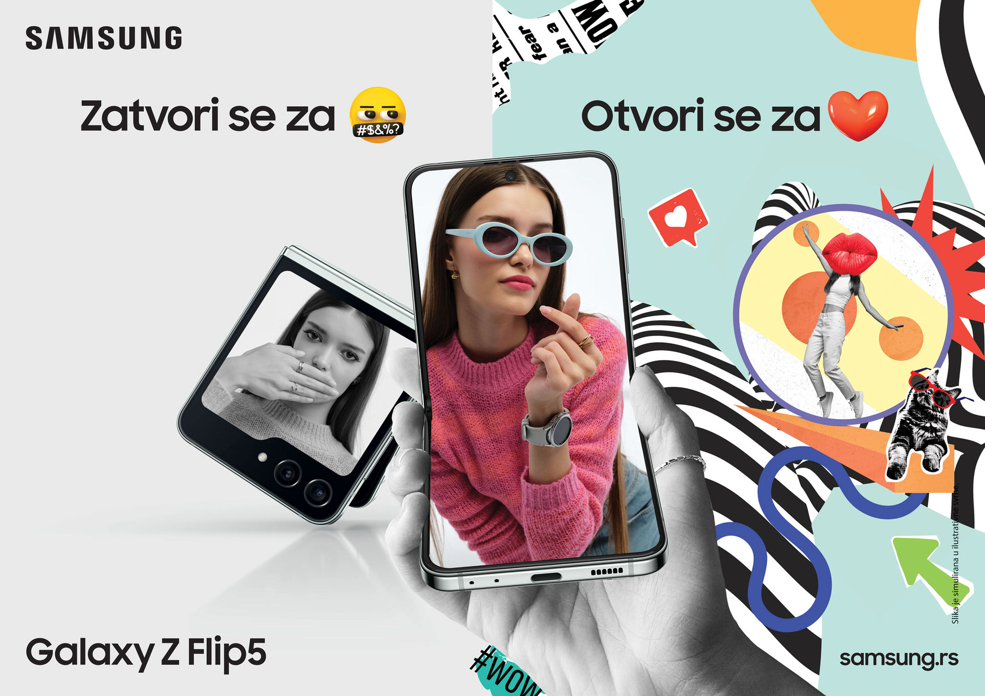 Ova kampanja ima za cilj da podstakne mlade da razmišljaju o novim prilikama, avanturama i izazovima, za koje je potrebno ostati otvoren, ali i da je prihvatljivo reći „ne“ i biti zatvoren za priče koje ne odgovaraju vlastitim vrednostima. Vreme je da naglasimo autentičnu komunikaciju, a Samsung svojim telefonom, Galaxy Z Flip5, simbolično predstavlja otvaranje-zatvaranje i fleksibilnost svake individue da se prilagodi, ali i da oblikuje svet po svojoj meri.