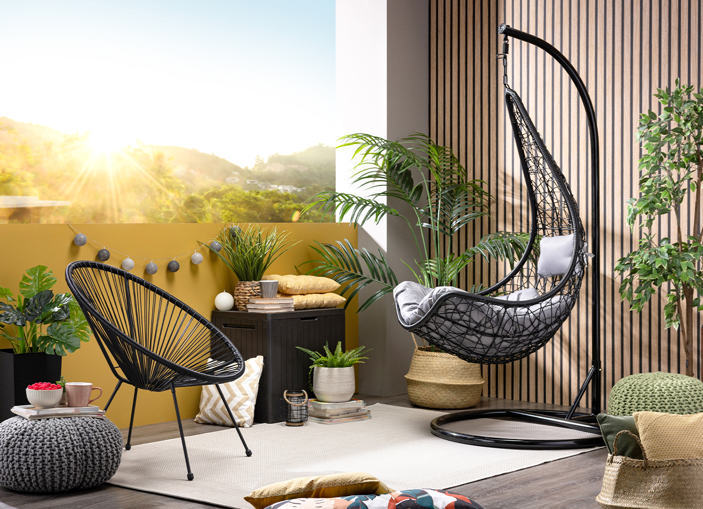 U centru pažnje, nalazi se elegantna ljuljaška PILOW. Pored svog atraktivnog izgleda, ona će terasi pružiti i neverovatnu udobnost. Sa crnom metalnom konstrukcijom, sedištem od crnog PE ratana i jastucima u sivoj nijansi, savršeno se uklapa u moderan, ali i prirodni ambijent. Kako biste uštedeli na prostoru, ali i kako bi vam terasa uvek bila uredna, CITY kutija za odlaganje će vam značiti za sve stvari koje ne koristite svakodnevno (poput jastuka za stolice ili prekrivača SUMMER za svežije večeri). Uz sređen enterijer trenuci provedeni u ljuljašci mogu postati mali ritual odmora: ispijanje jutarnje kafe iz omiljene šolje, popodnevna dremka ili večernje uživanje uz muziku – izbor je na vama.