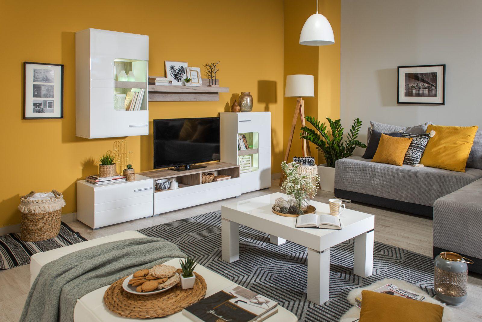Regal BRUNO, sa kombinacijom korpusa u opak belom dezenu, frontovima presvučenim belom lak folijom i dekorom sivog hrasta, predstavnik je novog koncepta dizajna. Za razliku od tamnih wenge tonova koji su godinama krasili tople porodične domove starijih generacija, savremeni trendovi koje dizajneri Forma Ideale promovišu je trend pročišćenijih belih tonova visokog sjaja koji odišu dobrom energijom i na najbolji način bude inspiraciju.