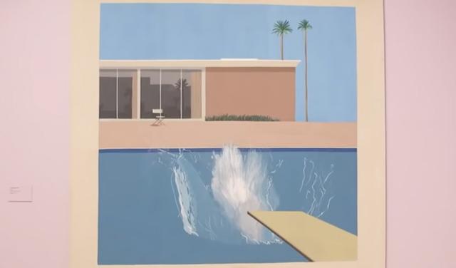 Slika iz 1966. predstavlja trenutak odmah pošto je skakač uleteo u vodu bazena, i hvata suštinu načina života u Kaliforniji, gde Hokni živi.