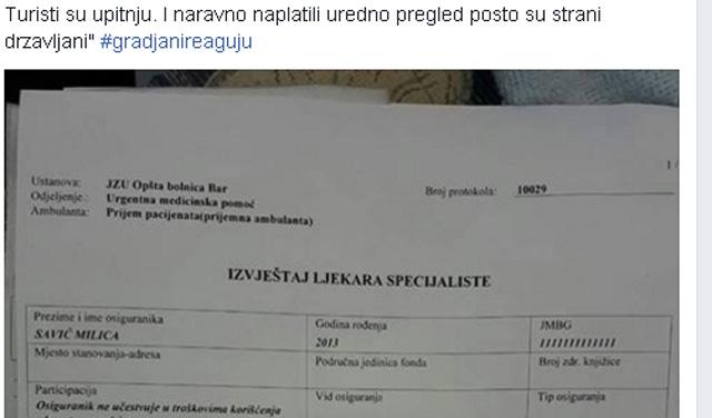 Nesvakidašnja terapija koju je jedan lekar u bolnici u Baru prepisao devojčici koja je povredila ruku izazvala je pažnju na društvenim mrežama. Naime, lekar specijalista je u uredno napisanom izveštaju četvorogodišnjoj devojčici, koja je primljena zbog povrede ruke, prepisao sladoled.
