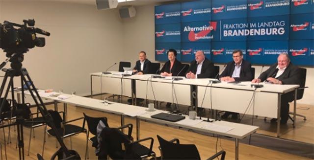 #AfD-Pressekonferenz ohne Presse: Weil #Brandenburg s AfD-Fraktionssprecher Andreas Horst keine Fragen von @Micha_BILD erlaubte, verließen alle Journalisten den Raum. AfD-Vizechefin Birgit Bessin brach die PK darauf ab