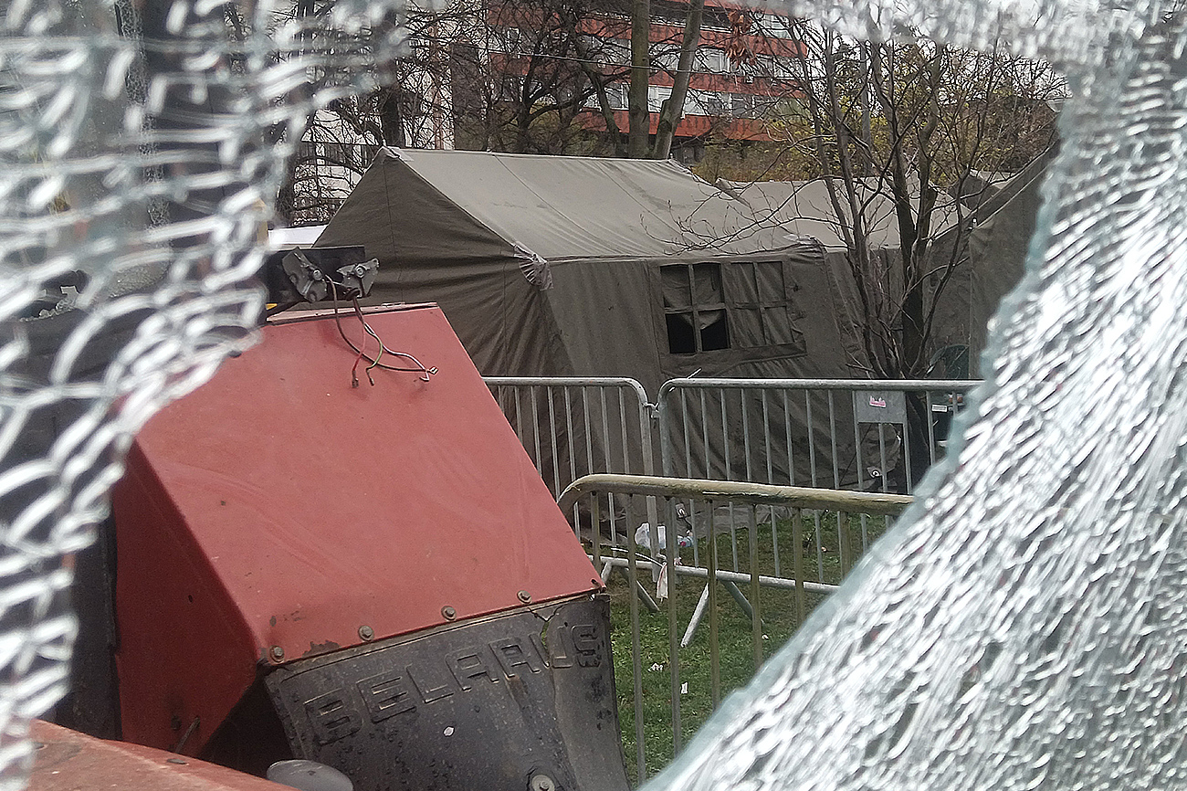 Oko njih traktori, tačnije dva „kordona“ traktora od kojih nijedan nije prošao bez oštećenja tokom prethodnih protesta.