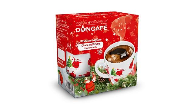 Pored šoljice, u novom poklon setu ograničene serije, spremili smo i praznični Doncafé Choco café, kao i Doncafé Moment, u pakovanjima od po 200 grama. Doncafé Choco café, tradicionalna kafa sa ukusom čokolade, donosi neodoljivi spoj omiljenih ukusa. Pažljivo izbalansirana mešavina pržene kafe u kombinaciji sa najfinijim kakao prahom i neodoljivom aromom čokolade napravljena je tako da zadovolji sva naša čula. Za neophodnu dozu jutarnjeg optimizma, tu je Doncafé Moment, mešavina kafe punog ukusa i intenzivne arome.