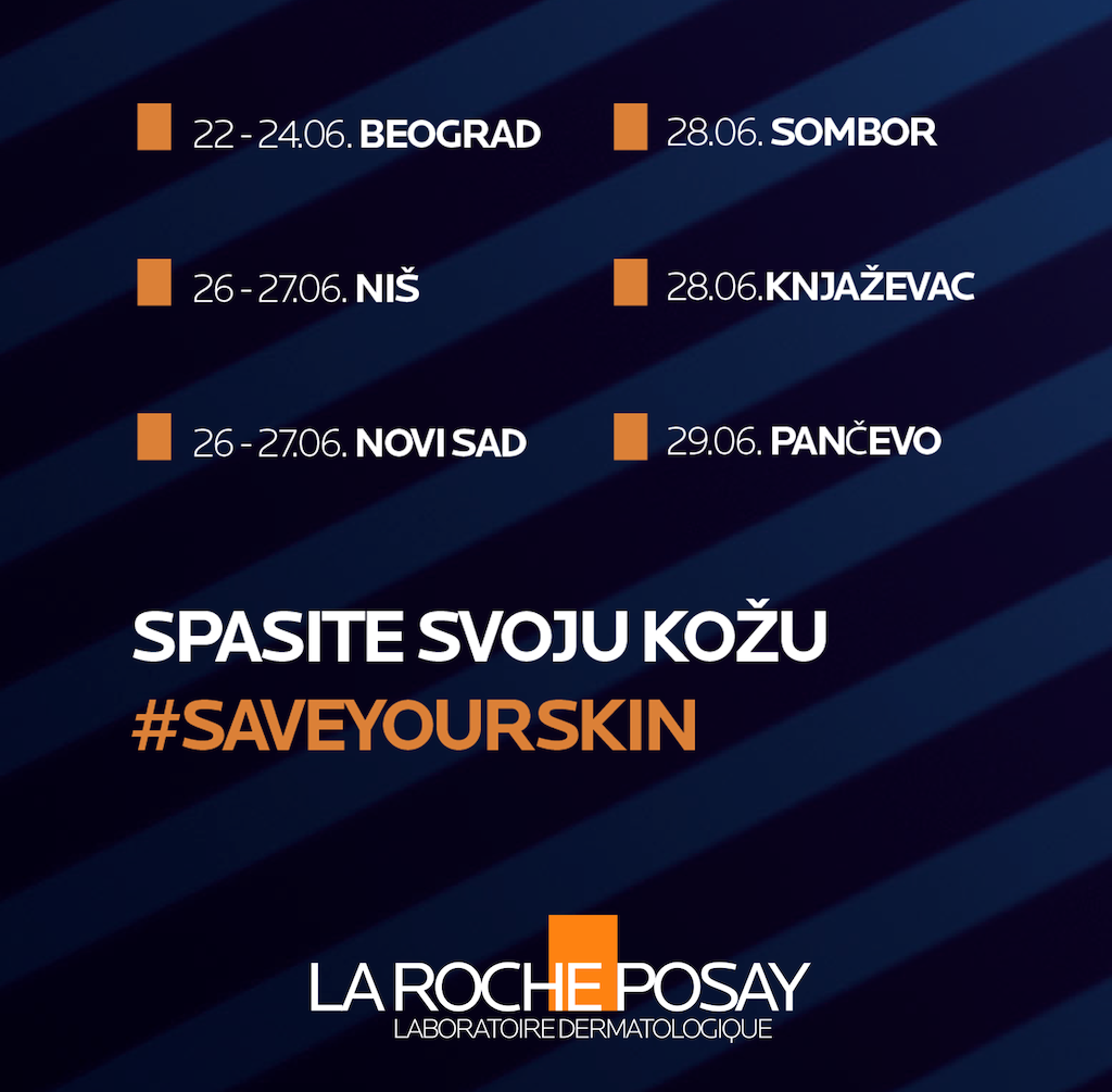 La Roche-Posay u saradnji sa Udruženjem dermatovenerologa Srbije (UDVS) organizuje preventivne preglede mladeža u Beogradu, Novom Sadu, Nišu, Somboru, Knjaževcu i Pančevu.