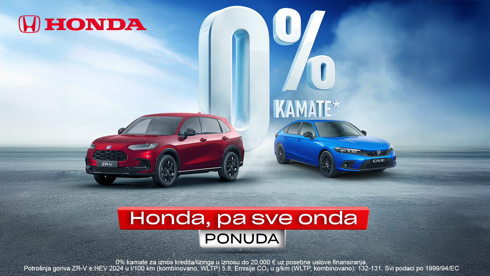 Upravo zato su Honda ZR-V i Civic idealan izbor za vaše buduće planove jer pored atraktivnog dizajna i moderne tehnologije, dolaze i uz konkretne pogodnosti u okviru aktuelne ponude HONDA, PA SVE ONDA. Specijalni uslovi finansiranja i 0% kamate za iznos kredita/lizinga u iznosu do 20.000 evra čine ovu odluku više nego racionalnom, u pravo vreme i na pravi način. Honda ZR-V je savremen, gradski SUV koji spaja eleganciju i praktičnost. Idealan je za porodične izlete, duža putovanja, ali i svakodnevnu vožnju gradom. Sa prostranom unutrašnjošću i naprednim bezbednosnim sistemima, pruža udobnost i sigurnost u svim uslovima. Honda Civic, sa druge strane, ostaje simbol dinamične i sportske vožnje uz visoku efikasnost.