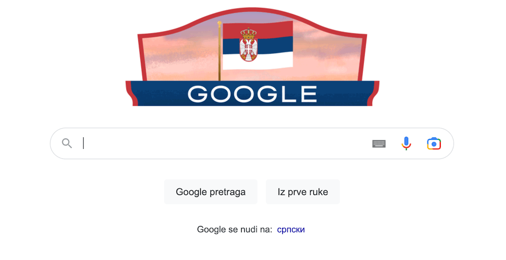 U Srbiji se obeležava Dan državnosti, a internet pretraživač Google je tim povodom svoju naslovnu stranu obojio bojama srpske zastave.
