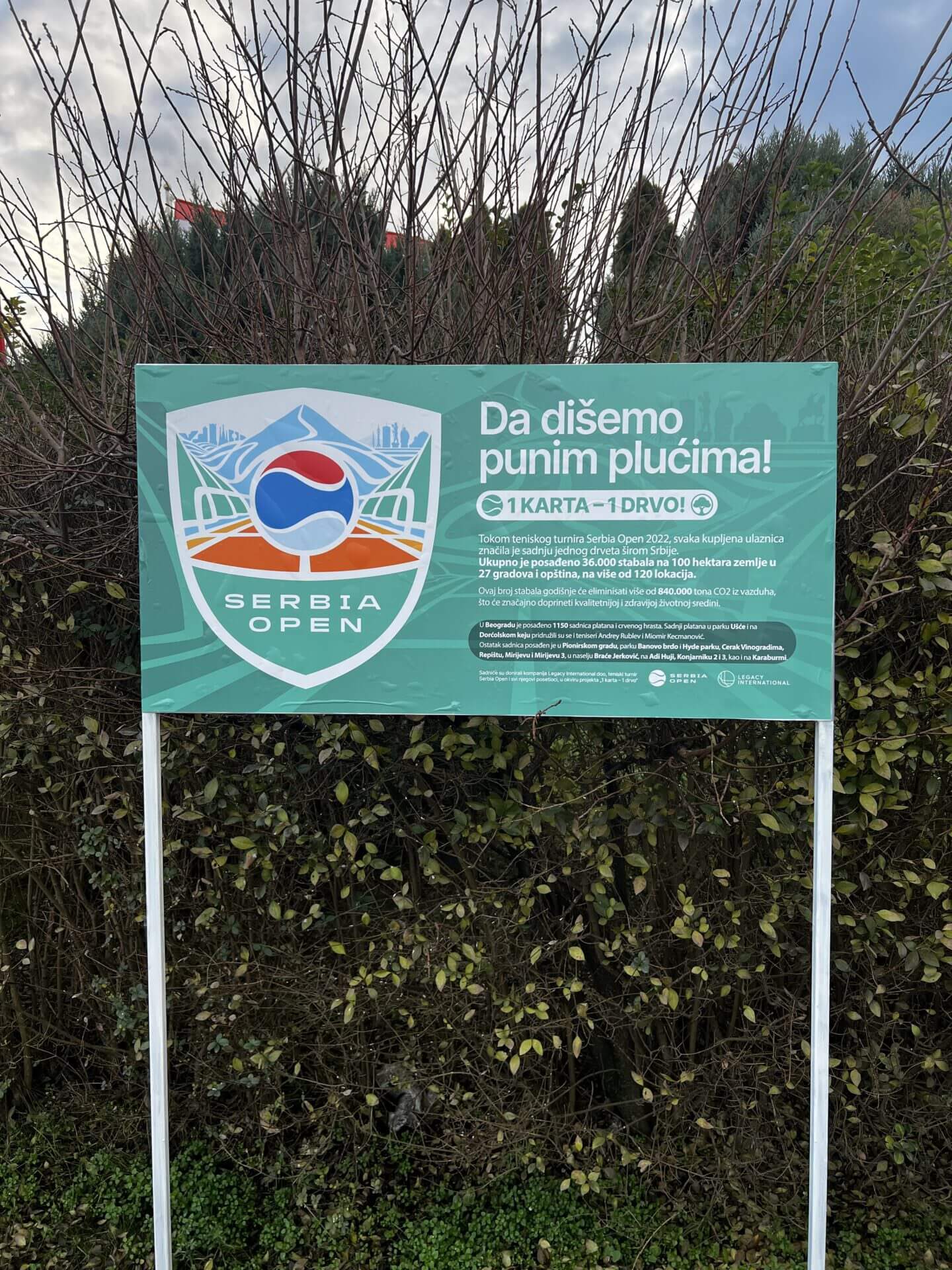 Srbija je bogatija za čak 36.000 sadnica platana i crvenog hrasta, zahvaljujući akciji „Jedna karta – jedno drvo“, čiji je cilj da se za svaku prodatu kartu na Serbia Open turniru posadi jedno drvo u gradovima širom Srbije.