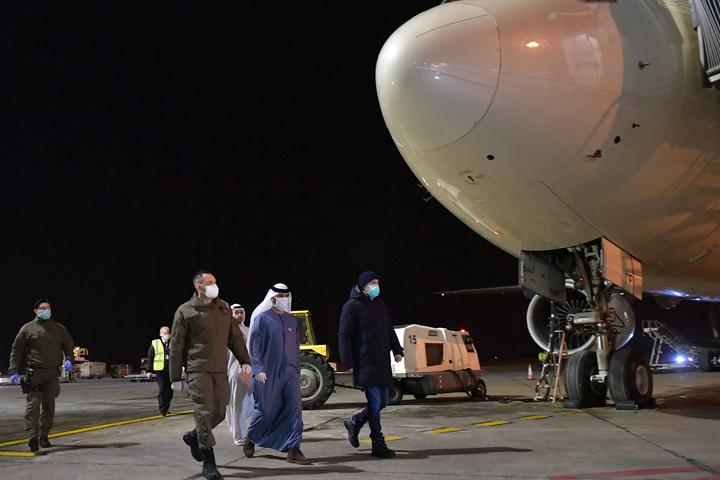 Avion su na aerodromu dočekali ministar odbrane Aleksandar Vulin, ministar zdravlja Zlatibor Lončar, ambasador UAE u Srbiji Mubarak Said El Daherija, drugi srpski zvaničnici i diplomata iz UAE.
