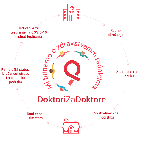 “Doktori za doktore” predstavlja informacioni sistem zasnovan na jednostavnom modelu prikupljanja aktuelnih podataka o stanju medicinskih radnika, koji se analiziraju od strane stručnih grupa, doktora, sa ciljem prepoznavanja i smanjenja problema zdravstvenih radnika van bolnice, kao i uzroka koji ugrožavaju kako fizičko (zaraza, oboljevanje i iscrpljenost) tako i mentalno zdravlje ( anksioznost, depresija i burnout).
