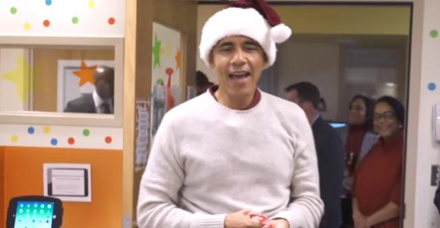 Bivši američki predsednik Barak Obama, obučen u Deda Mraza, nenajavljeno je posetio bolesnu decu u jednoj bolnici u Vašingtonu.