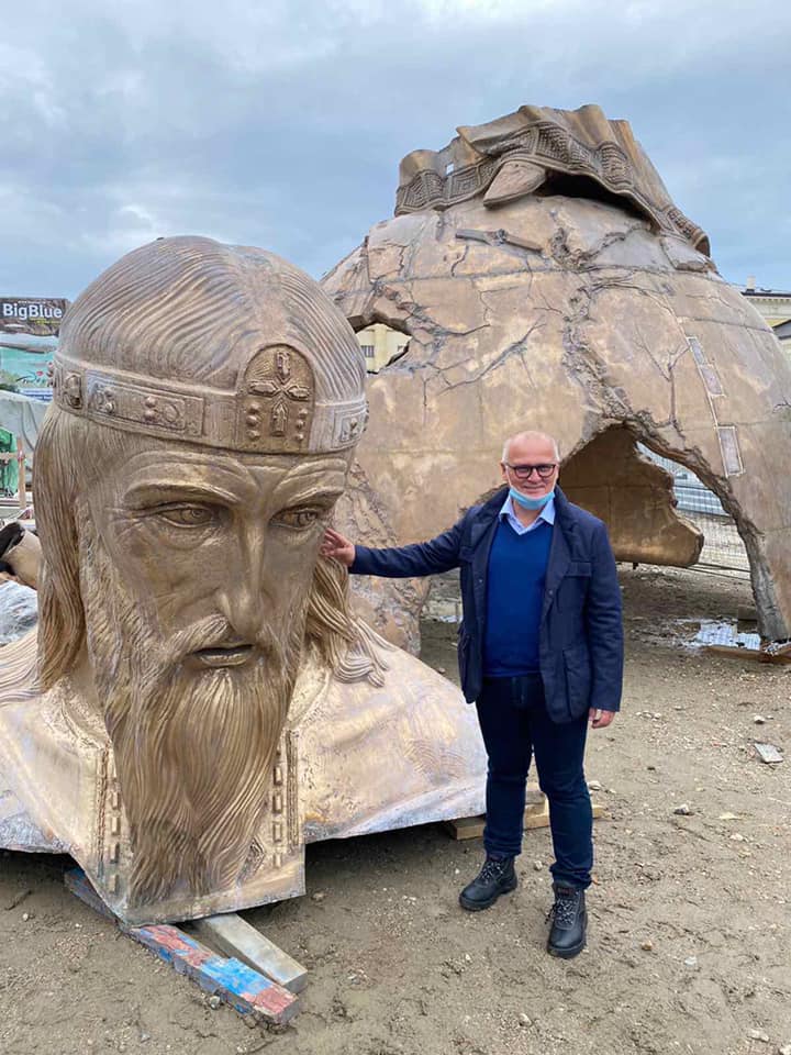 Na Savski trg u Beogradu iz Rusije stigli su poslednji delovi spomenika Stefanu Nemanji čije će postavljanje biti završeno do sredine novembra.