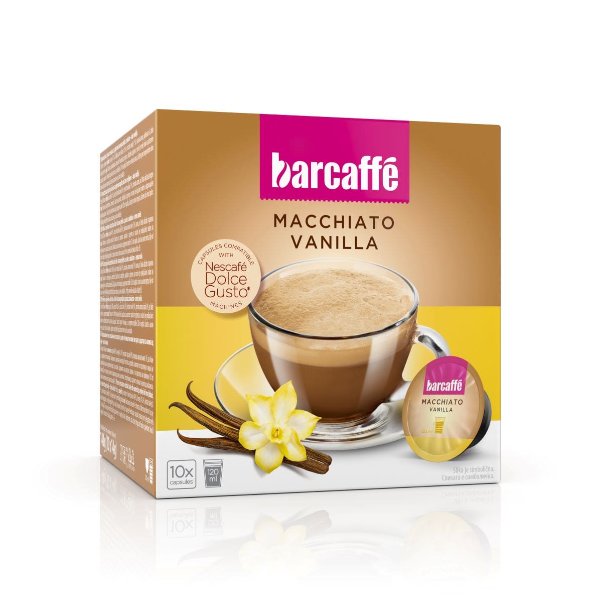 Uz zavodljivi ukus Barcaffè Macchiato Vanille imaćete osećaj kao da ste u zagrljaju najbolje kafe i mirisne vanile, koji će pratiti sve vaše srećne trenutke. Bilo da je pijete sami ili sa prijateljima, ova kafa u kapsulama (kompatibilna sa Nescafe Dolce Gusto aparatima) će vam pružiti pravu meru zadovoljstva u svakom momentu i biti neizostavan deo vaših druženja i razgovora.
