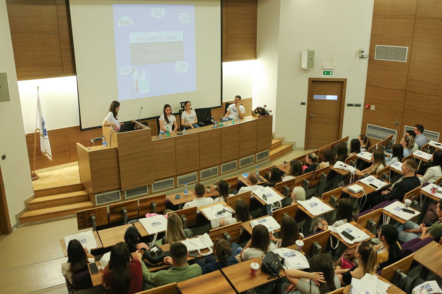Studenti i studentkinje su imali bezbroj pitanja za specijalistkinju dermatovenerologije dr Jovanu Pešić i predstavnicu CeraVe brenda Anu Kovačević, a nisu propustili ni priliku da se slikaju i ćaskaju sa popularnim influenserom i CeraVe ambasadorom Dušanom Petrovićem.