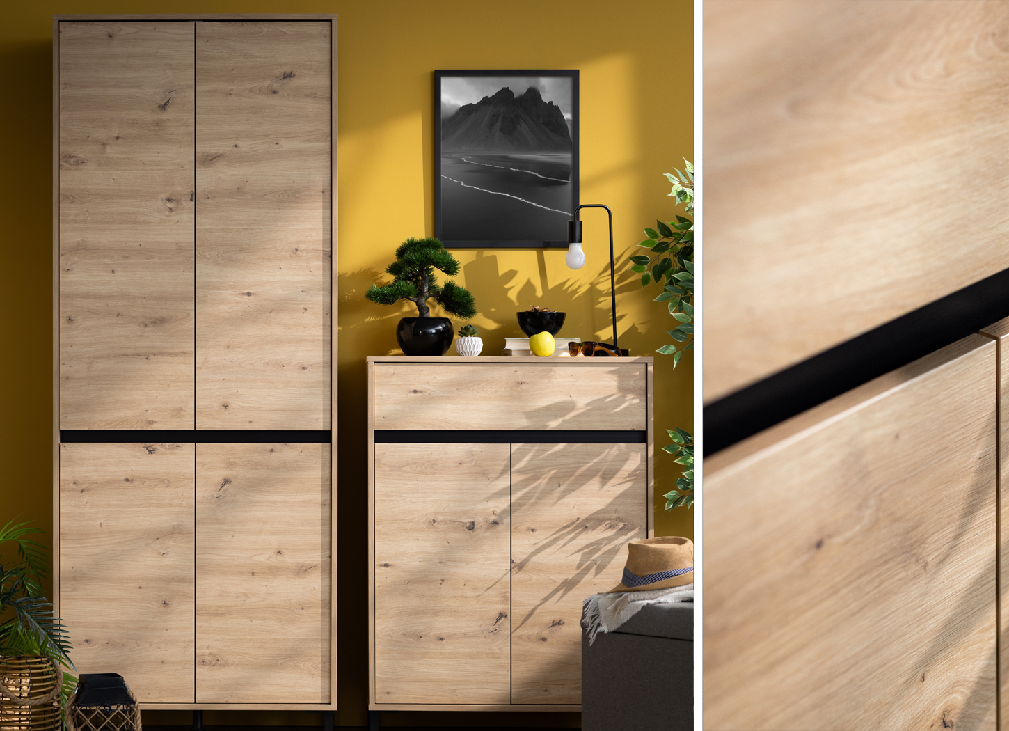 Njihova najveća prednsot je u funkcionalnosti — dizajnirani su tako da maksimalno štede prostor predsoblja i olakšavaju održavanje urednosti ovog dela doma. Cipelar FLANNAN 2K4V sa više nivoa odlaganja omogućava jednostavno razdvajanje sezonske i svakodnevne obuće, što značajno olakšava organizaciju ambijenta predsoblja.