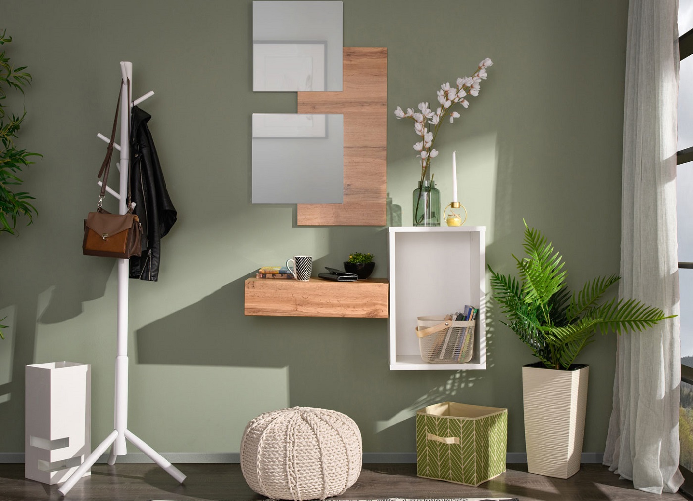 Predsoblje EASY sastoji se od gornjeg dela koji se kači na zid i sadrži ogledala, dok se donji deo sastoji od otvorene i zatvorene police. Predstavlja skladnu i zanimljivu kompoziciju na zidu, kojoj radi ravnoteže možete dodati i samostojeći čiviluk.