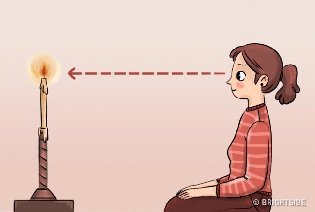 - Probajte staru indijsku vežbu. Postavite predmet udaljeno od vas i fokusirajte pogled na njega. Najbolje bi bilo da to bude sveća i pokušajte da ne trepnete. Takim zatvorite oči i fokusirajte se na predeo između obrva. Pokušajte da zamišljate objekat u koji ste gledali što duže možete. Radite ovo oko 10 minuta.