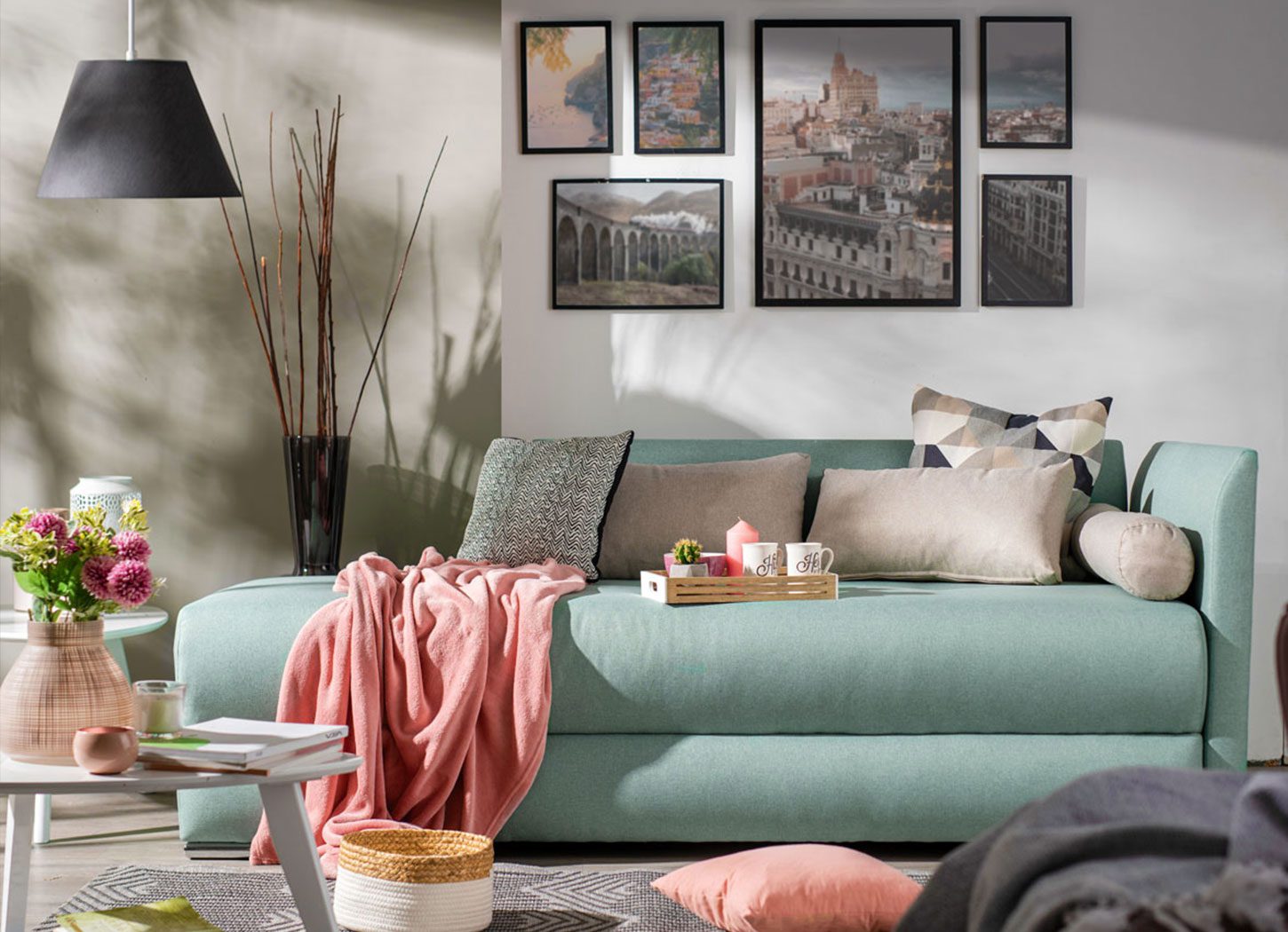 Ležaj ALTELLA je veoma praktičan, a njegova pastelna boja, sa jastučićima u neutralnoj bež boji raznih oblika, čini ga modernim modelom, pogodnim za uređenje različitih ambijenata u domu. Odličan je izbor kao dodatni ležaj za spavanje, a poseduje i jednu kutiju za odlaganje posteljine.