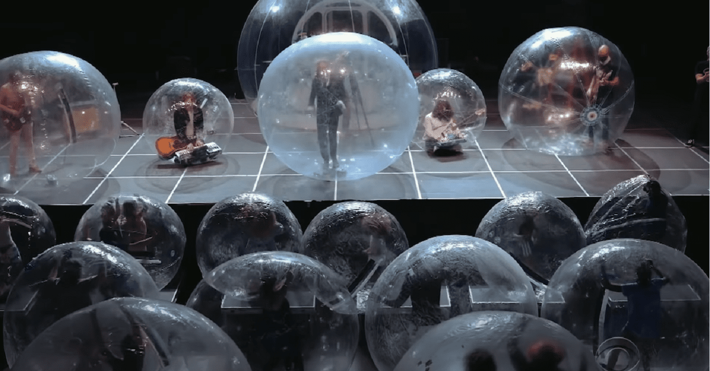 The Flaming Lips performed a gig in bubbles to an audience also in bubbles last night. pic.twitter.com/XzNRKWvPn4