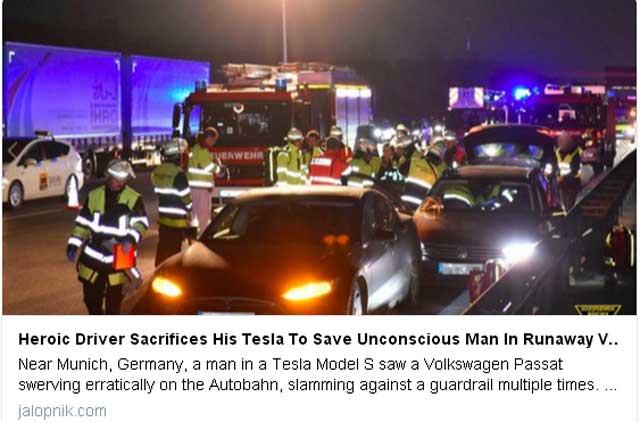Tokom vožnje po autoputu pored Minhena, Manfred Kik primetio je da ispred njega jedan Volksvagen krivuda po putu. Ubrzo je 41-godišnjak shvatio da je vozač u nesvesti pa je dodao gas na svojoj Tesli Model S i zaobišao Volksvagen. Namestio se ispred njega i polagano počeo da koči.