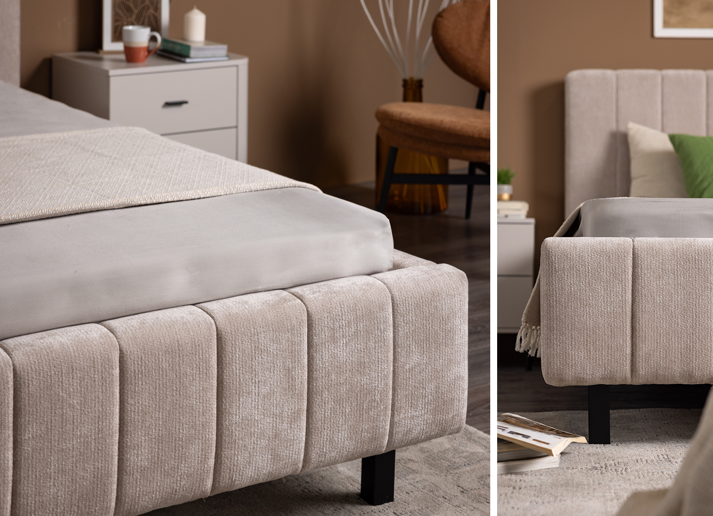 Francuski ležaj JOY 160×200 savršeno se kombinuje sa neutralnim tonovima u prostoru, a enterijer se može obogatiti dodavanjem tekstila i jastučića u jarkoj boji. Svetle boje većih komada nameštaja vizuelno proširuje prostor, dok dodaci poput noćnih stočića, jastuka i tepiha dodatno naglašavaju estetiku spavaće sobe. Zato je noćni ormarić SERDICA NO2F odličan izbor ukoliko tražite funkcionalan i moderan noćni ormarić.