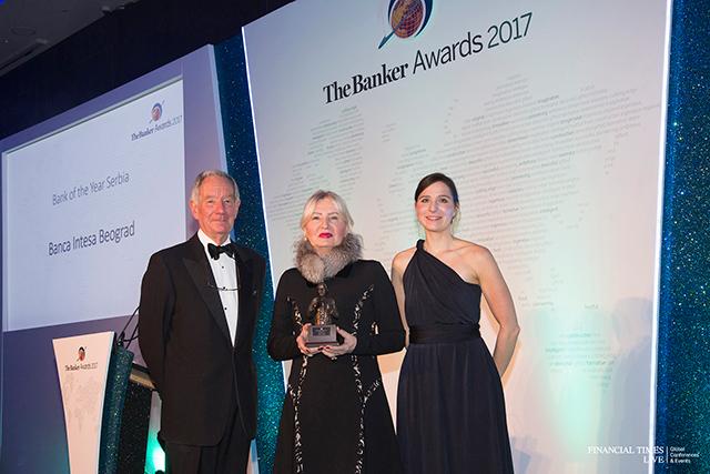 Ugledni finansijski i bankarski časopis The Banker dodelio je Banca Intesa nagradu za najbolju banku u Srbiji u 2017. godini. Priznanje za banku godine ukazuje se na osnovu analize brojnih parametara uključujući aktivu i adekvatnost kapitala, tehnološka unapređenja, inicijative preuzete u odnosima sa klijentima, kao i finansijsku inkluziju.