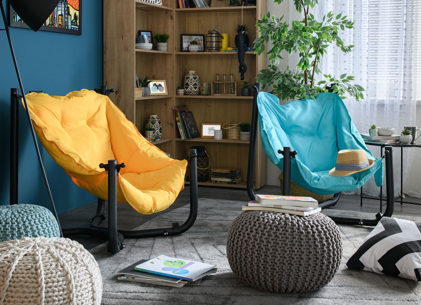 Za dodatnu udobnost, ali i kao dekorativne elemente, možete dodati i pletene tabure, dostupne takođe u nekoliko različitih boja.