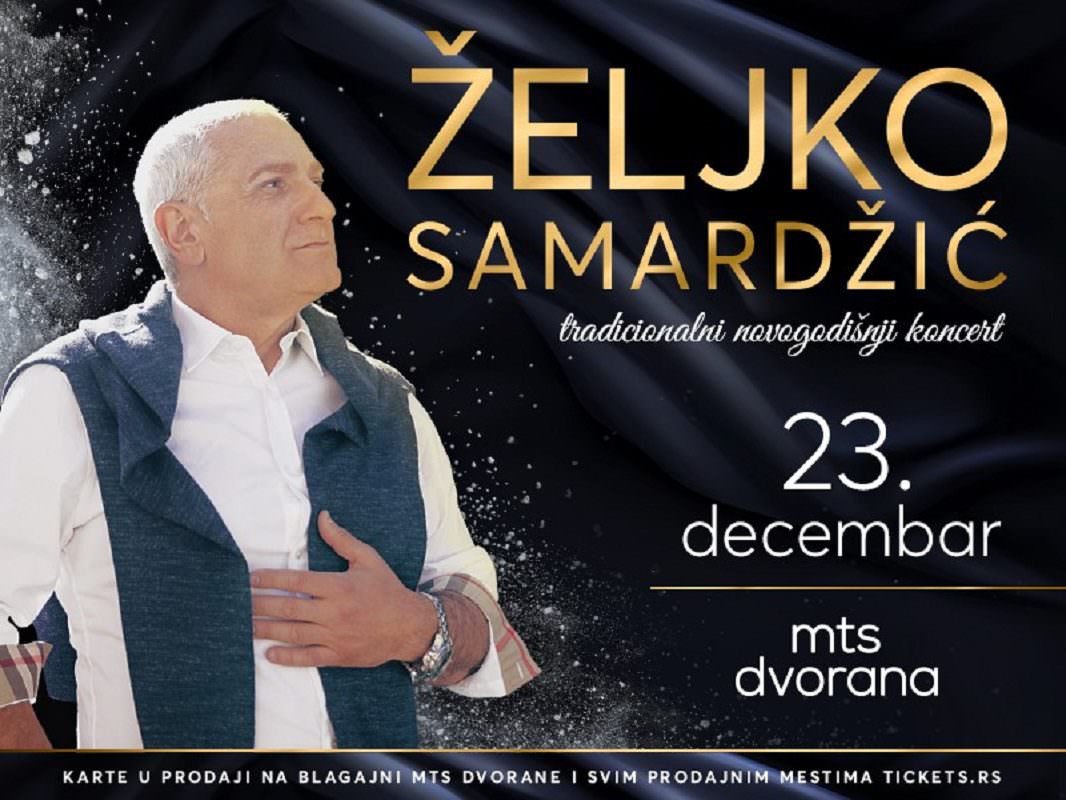 Tradicionalni novogodišnji koncert Željka Samardžića biće održan 23. decembra i ove godine na istom mestu, mts Dvorani, nekadašnjoj Dvorani Doma sindikata. Na „daskama“ kultnog prostora, Samardžić će i ove zime specijalno za svoju publiku upriličiti koncert, kojim će publiku podsetiti na neke od svojih čuvenih pop hitova iz svog bogatog opusa. Biće to jedinstvena prilika da posetioci čuju i nekoliko poptpuno novih pesame koje su se pojavile u međuvremenu.