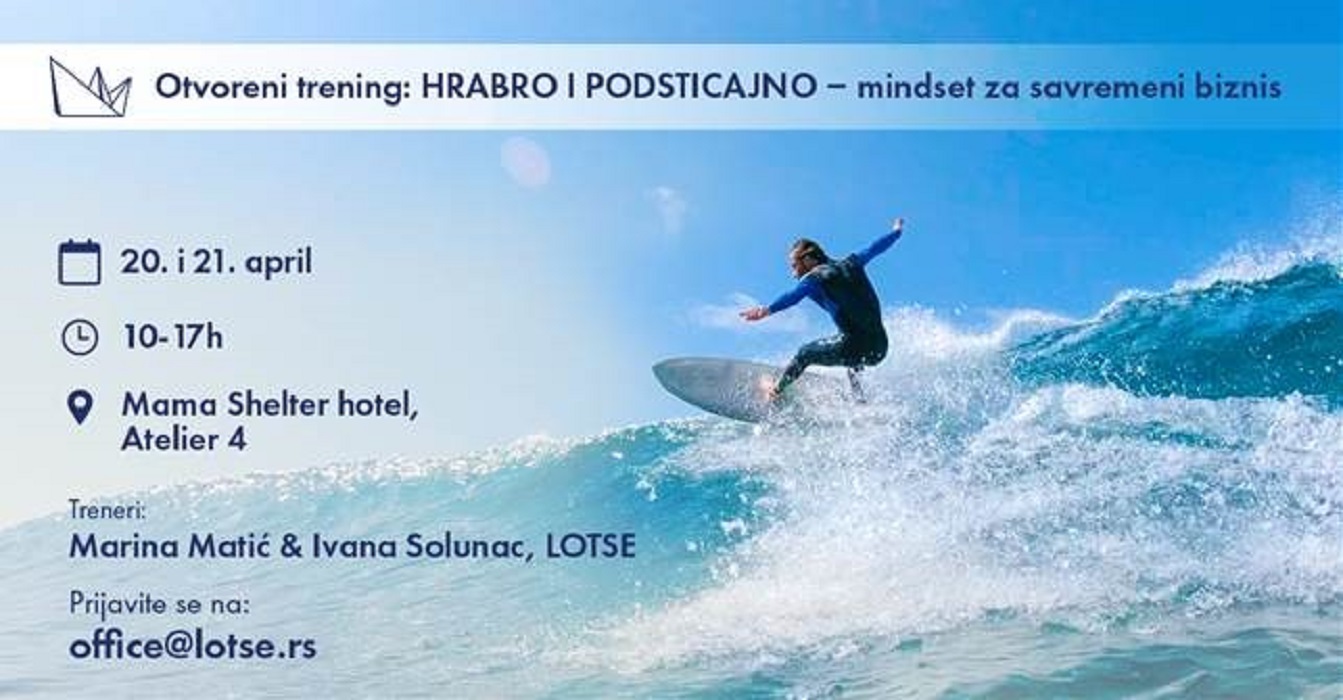 Vidimo se 20. i 21. aprila na otvorenom treningu „Hrabro i podsticajno – mindset za savremeni biznis!“.