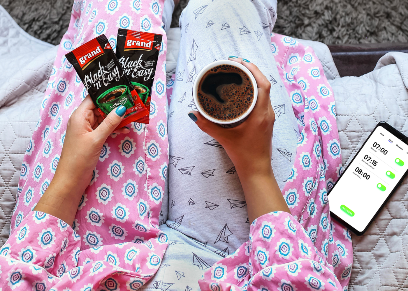 Poslednja, ali jaka „fora“ za još jače razbuđivanje, svakako jeste prva jutarnja kafa, koja je mnogima sinonim za buđenje. Ukoliko jutro ne možete da zamislite bez šolje jake turske kafe,  imamo pravo rešenje za vas. Grand Black’n’Easy u novoj, Strong varijanti, pored brze pripreme i ukusa prave turske kafe, stiže u pojačanoj dozi od 10 grama i donosi još jači ukus i još intenzivnije arome. Black’n’Easy Strong omogućiće svima da se brzo i lako razbude i započnu dan na pravi način. Idealna je za prvu jutarnju kafu kod kuće, jer se priprema za minut. Novi Black’n’Easy Strong, od sada se može naći i u poklon setu sa omiljenom Black’n’Easy šoljom.
