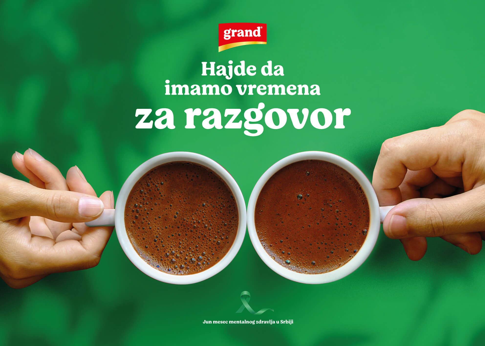 Razgovor je često lek, melem za dušu, on znači i slušanje i otvaranje, osvešćivanje problema i njihovo rešavanje. Grand kafa je brend koji spaja. Šoljica kafe je savršen pokretač razgovora, a razgovor je samo jedan, često prvi korak u nizu u očuvanju mentalnog zdravlja. Kao brend, Grand kafa u kontinuitetu ukazuje koliko je bitno da imamo vremena jedni za druge, ali i vremena za sebe.