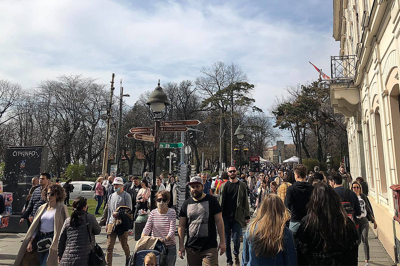 Veliki broj ljudi koji se ove subote može videti u centru Beograda „izazvalo“ je lepo vreme, ali i organizovana vakcinacija za građane susednih zemalja koji su u velikom broju došli u Srbiju da prime cepivo, od kojih će mnogi provesti vikend u glavnom gradu.