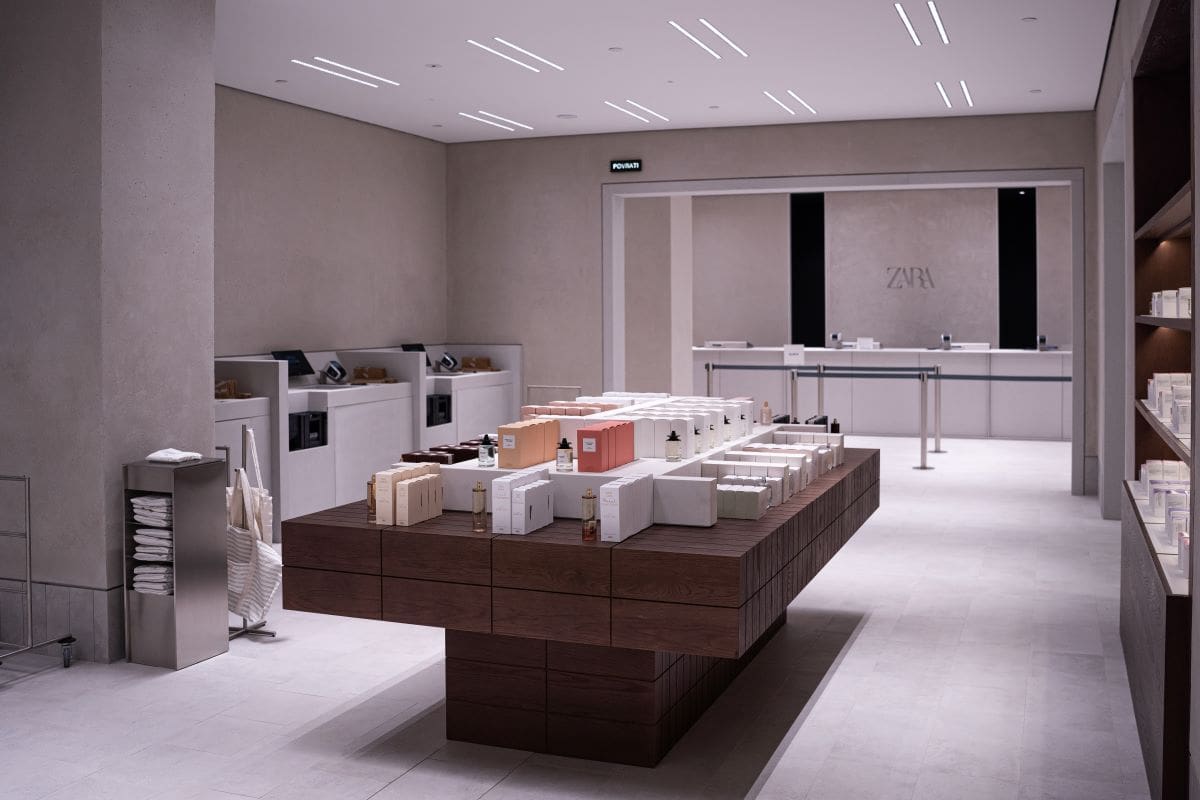 Arhitektonski koncept u potpunosti je osmislio studio Zara Arhitektura. Enterijer je pretežno beli, čist i neutralan s naznakama boje i topline drvenog nameštaja i prirodnih tonova tekstila, predstavljajući kupcima raznoliku kolekciju brenda u jednostavnom, sofisticiranom i gostoljubivom okruženju. Radnja se prostire na dva sprata na kojima se nalaze odeljak za žene, muškarce i decu.