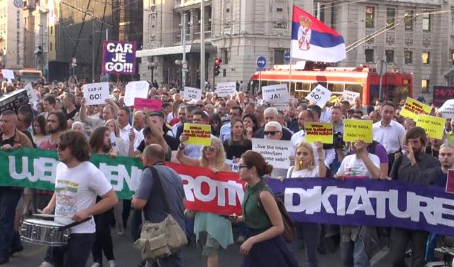 Šetnja učesnika protesta protekla je bez incidenata, a išli su od Trga Republike, pored Skupštine Srbije, Radiotelevizije Srbije, Politike, pa ponovo do Trga.