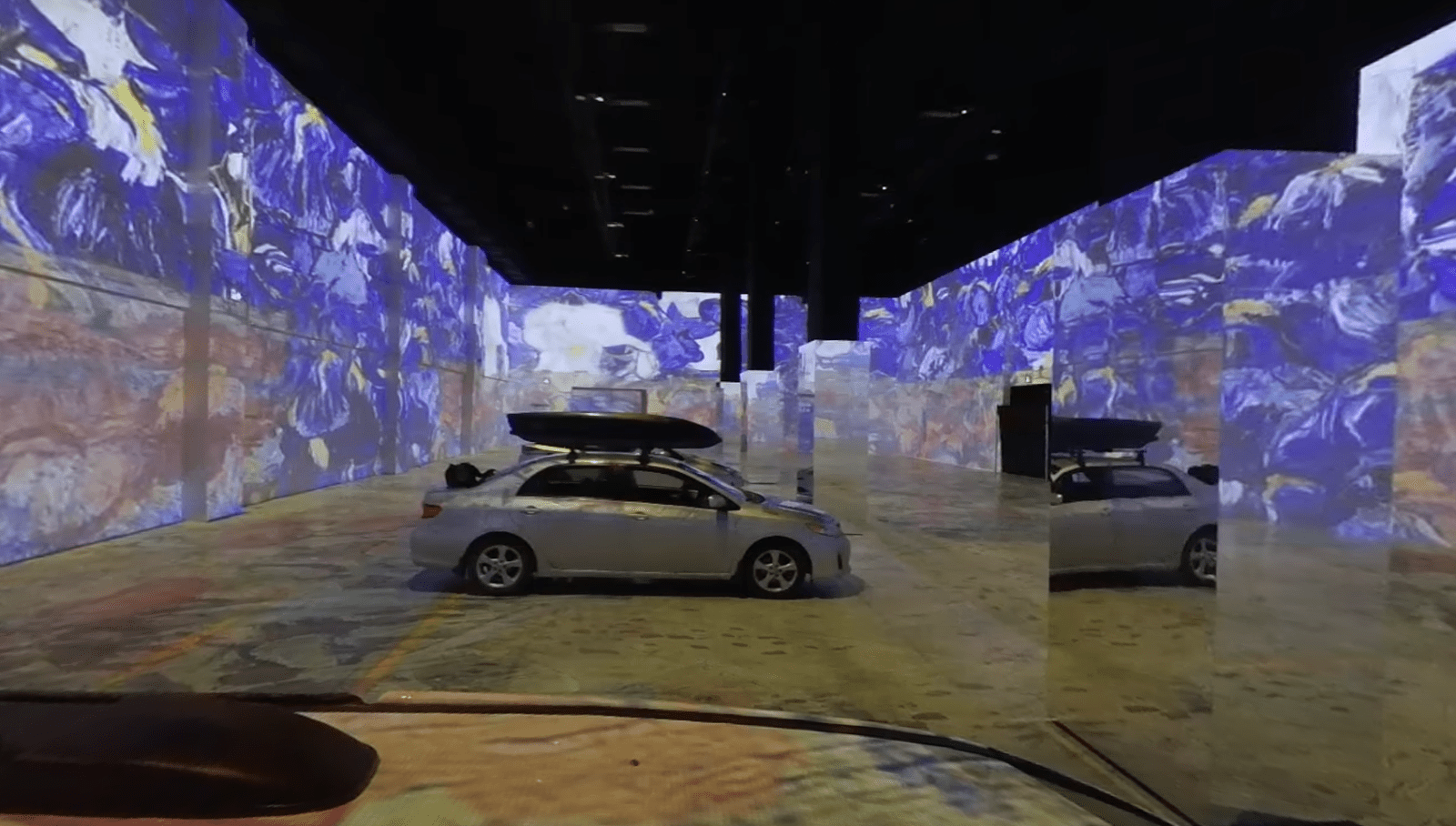 Izložba je otvorena prošle nedelje i sastoji se od dva izložbena dela u ogromnom skladištu u Torontu. U jednom delu, namenjenom onima koji vole ga razgledaju sa nogu, nalaze se krugovi za socijalno distanciranje, a drugi deo namenjen je za razgledanje iz automobila.