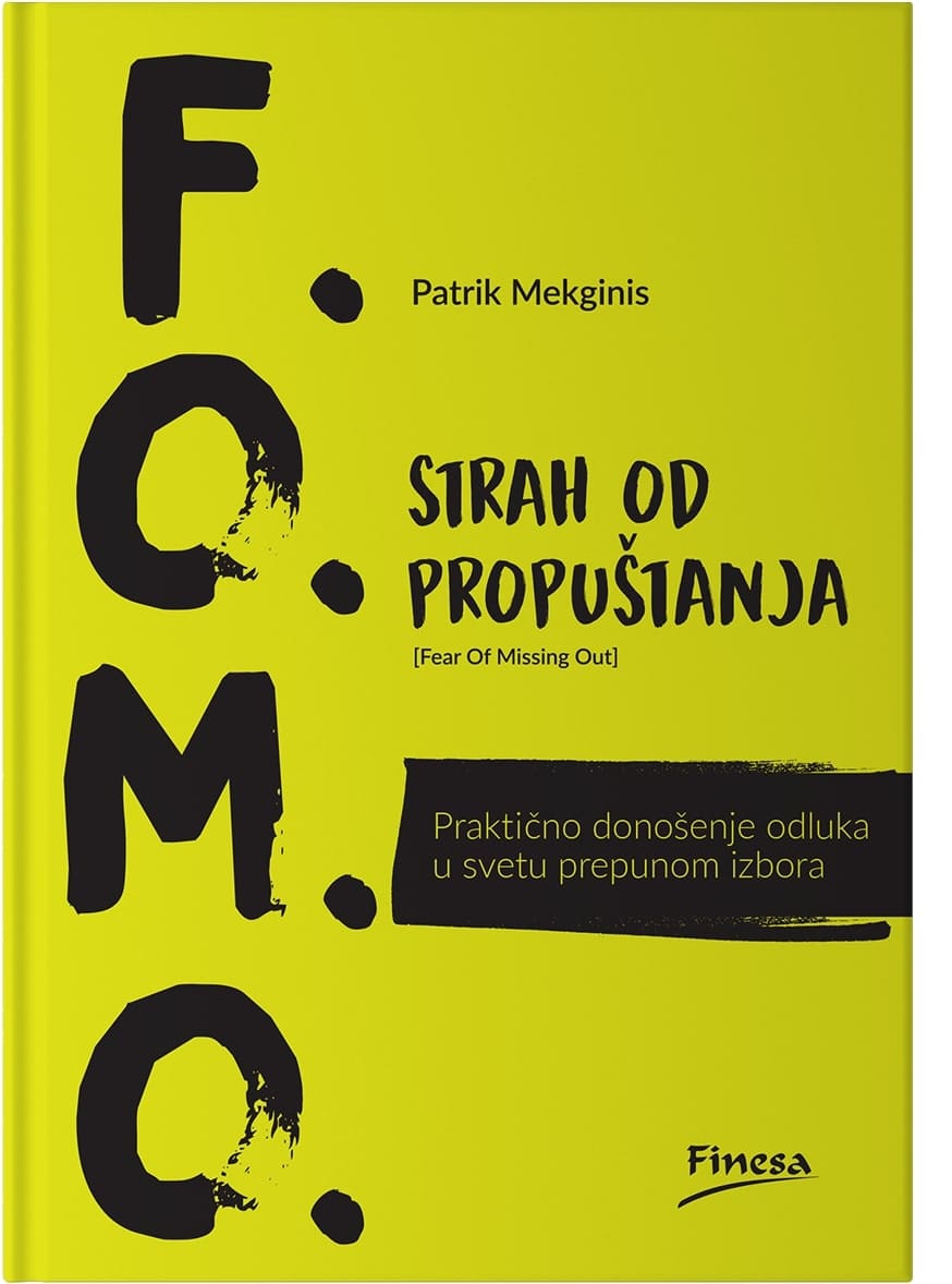F.O.M.O. je globalna kovanica kojom se opisuje poražavajuća anksioznost kada razmišljamo kako drugi ljudi imaju bolja i značajnija iskustva od nas. To je, zapravo, prirodan, biološki odgovor, ali to ne čini stvar manje lošom. Potpomognut razvojem društvenih mreža, F.O.M.O. je stvar društvene krize – ali šta mu je lek? Prema Partiku Makginisu, rešenje ove krize se nalazi u donošenju odluka. Kada budemo prioritizovali svoje odluke i osluškivali sopstvenu intuiciju, zapravo ćemo ućutkati F.O.M.O. i njegovog manje poznatog rođaka – F.O.B.O. (strah od bolje opcije).
