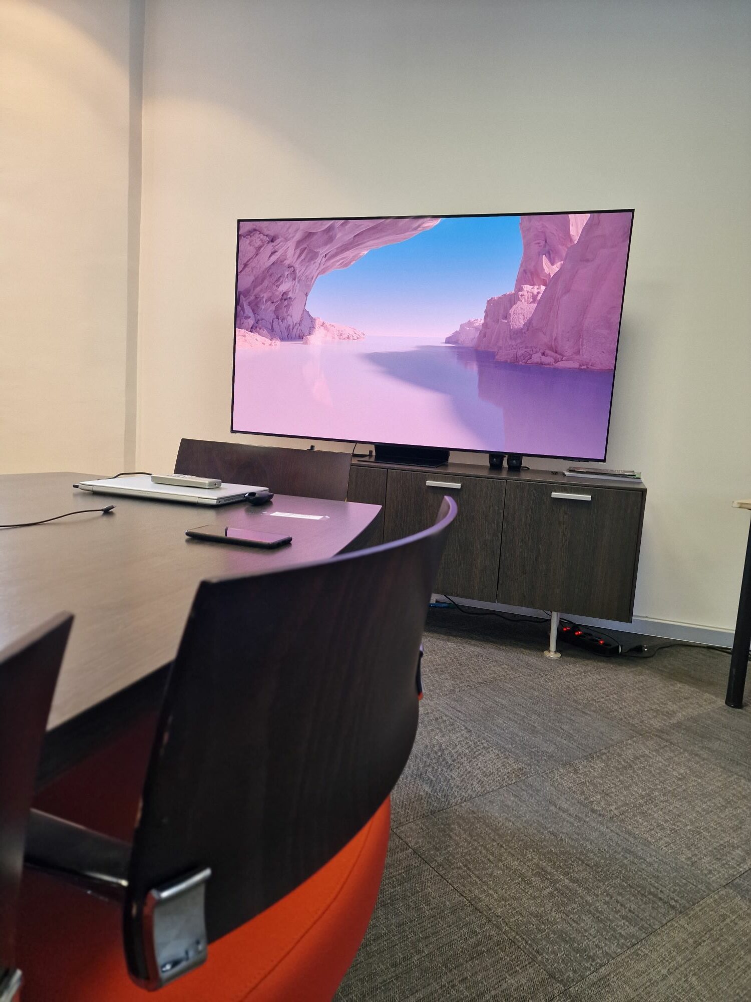 Pre svega, predivan, elegantan i moderan Infinity One dizajn je nešto što nismo mogli da ne zapazimo. Svojim neverovatno tankim profilom ovaj TV je baš visoko podigao standarde koje smo imali do sada kada su televizori u pitanju. Uz ovu našu kancelariju se savršeno uklopio, a kako se može pohvaliti dijagonalom od 77“, zauzeo nam je jedan ceo zid sale za sastanke. Njegova titanijum crna boja izgledala je elegantnona belom zidu, postižući neverovatno dobar kontrast. Minimalizam i savremenost u jednom uređaju – savršeno!