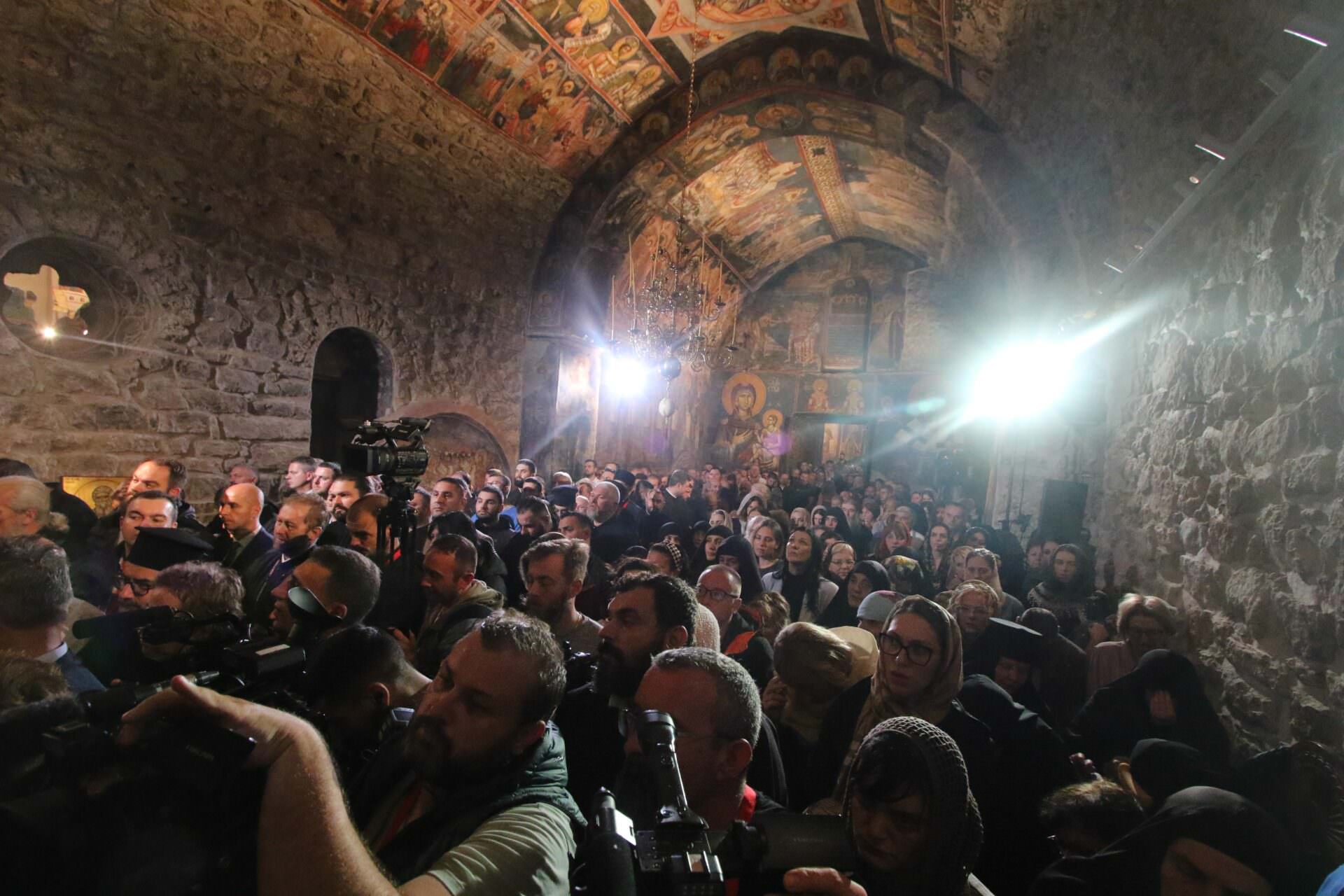 Na liturgiji u manastiru Pećka Patrijaršija, uprkos lošem vremenu, prisustvovao je veliki broj vernika.