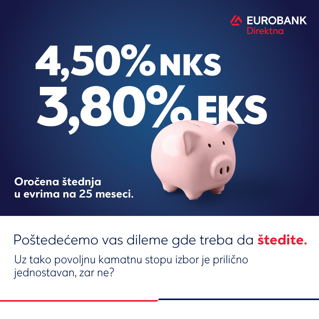 „Atraktivnim paketom štednje potvrđujemo da je Eurobank Direktna pouzdan partner i siguran izbor za štednju građana. Naša želja je da i postojećim, ali i novim klijentima ponudimo što povoljnije uslove kako bi ostvarili svoje finansijske planove uz našu podršku. Pružili smo klijentima priliku da oroče svoj novac uz posebne, atraktivne kamatne stope za štednju u evrima, prilagođenu njihovim potrebama”, izjavio je Dušan Mihailović, član Izvršnog odbora Eurobank Direktne.