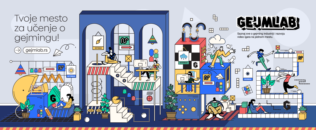 Gejmlab je prva otvorena, besplatna plaforma za učenje o gejmingu kod nas sa ciljem da bude centralno mesto za sticanje veština i znanja potrebnih za učenje i prva iskustva u razvoju igara. Kroz kurseve, iskustvo stručnjaka, praktičan rad, otvorene izvore informacija, mladi mogu da steknu osnovna znanja o samoj industriji, disciplinama i karijerama u okviru nje.